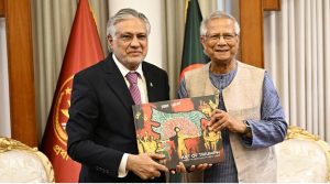 প্রধান উপদেষ্টা জুলাই গণঅভ্যুত্থানের বিভিন্ন চিত্র সম্বলিত একটি গ্রাফিতি বই তুলে দেন পাকিস্তানের পররাষ্ট্রমন্ত্রীর হাতে